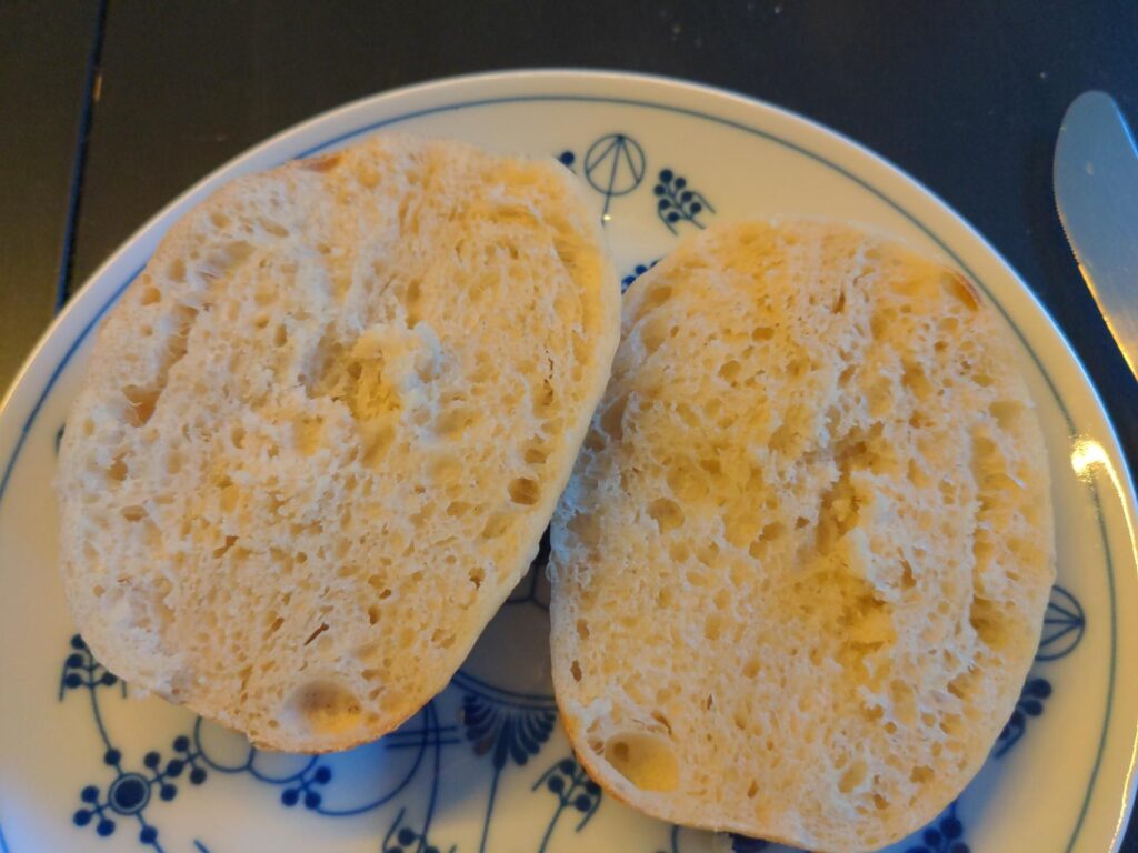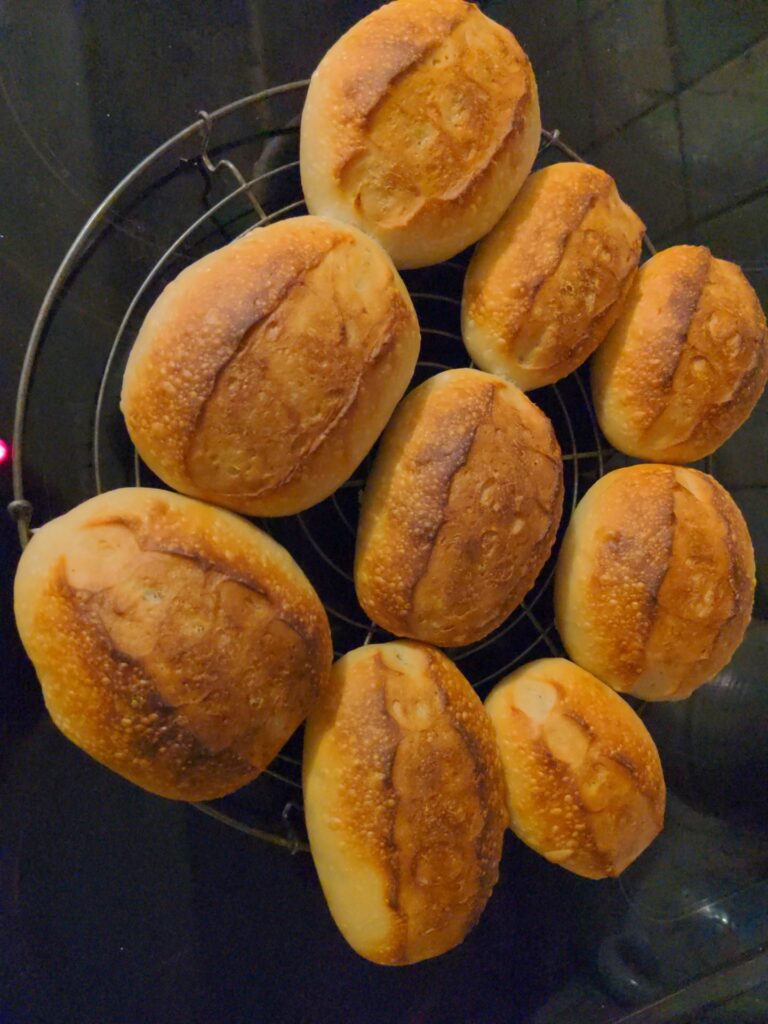 Eigenes Übernacht-Rezept: 4. Oktober 2025 von sb 300g Wasser 500g Mehl8 Backmalz10g Argave Dicksaft 12g Salz 6 g HefeAm Vortag geformt und über Nacht im Kühlschrank